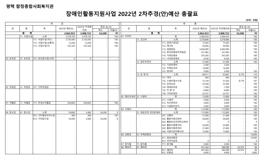 2022년 합정종합사회복지관 장애인활동지원사업 2차 추경 예산 보고 페이지 정보 작성자 합정복지관 작성일22-12-23 16:37 조회7,412회 댓글0건 관련링크 이전글 다음글 목록 본문 본 합정종합사회복지관 장애인활동지원사업은 2022년 제2차 세입세출 추경예산을 공지합니다. 이전글 다음글 목록