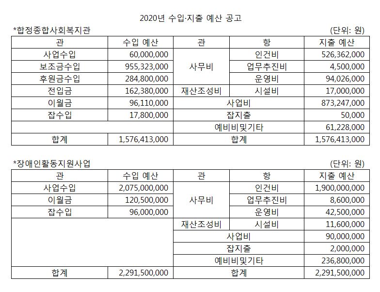 2020년 복지관 예산 공고 페이지 정보 작성자 합정종합사회복지관 작성일20-01-07 11:28 조회13,167회 댓글0건 관련링크 이전글 목록 본문 2020년 예산을 공고 합니다. 이전글 목록
