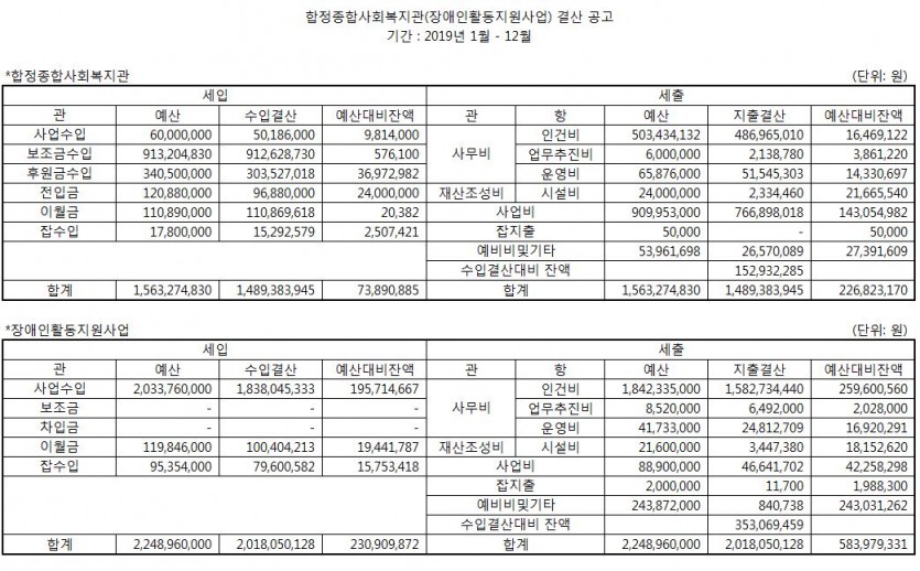 2019년 합정종합사회복지관 결산공고 페이지 정보 작성자 합정종합사회복지관 작성일20-03-30 10:41 조회13,903회 댓글0건 관련링크 이전글 다음글 목록 본문 2019년 결산 공고 이전글 다음글 목록