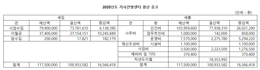 2019년 재가노인센터 결산공고 페이지 정보 작성자 평택합정재가노인센터 작성일20-03-30 10:43 조회14,016회 댓글0건 관련링크 이전글 다음글 목록 본문 2019년 결산 공고 이전글 다음글 목록