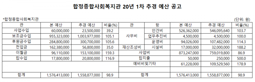 2020년 복지관 1차 추경 예산 공고 페이지 정보 작성자 합정종합사회복지관 작성일20-11-27 10:06 조회13,909회 댓글0건 관련링크 이전글 다음글 목록 본문 20년도 1차 추경 예산을 공고합니다. 이전글 다음글 목록