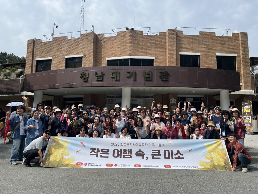합정종합사회복지관(관장 김동국)은 지난 9월 30일, 자원봉사자와 후원자 약 100여 명이 함께하는 나들이 행사를 청주 일대에서 진행하였다. 이번 나들이는 그동안 지역사회를 위해 헌신한 자원봉사자와 후원자들의 노고에 감사를 전하고, 더불어 힐링과 화합의 시간을 마련하기 위해 기획되었다.