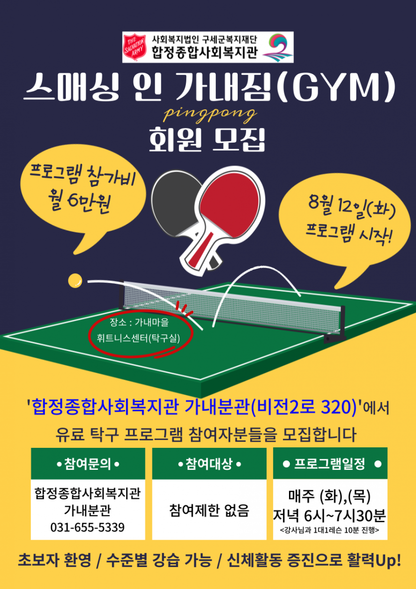 〈스매싱 인 가내짐(GYM) 탁구교실 회원 모집〉