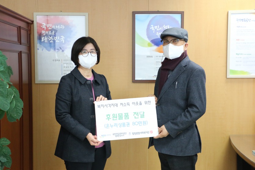 내용: 매년 명절을 앞두고 온누리상품권 지원을 통해 지역사회 소외계층을 위한 나눔을 실천해주는 국민연금에서 올해도 어김없이 나눔을 실천해 주셨습니다.