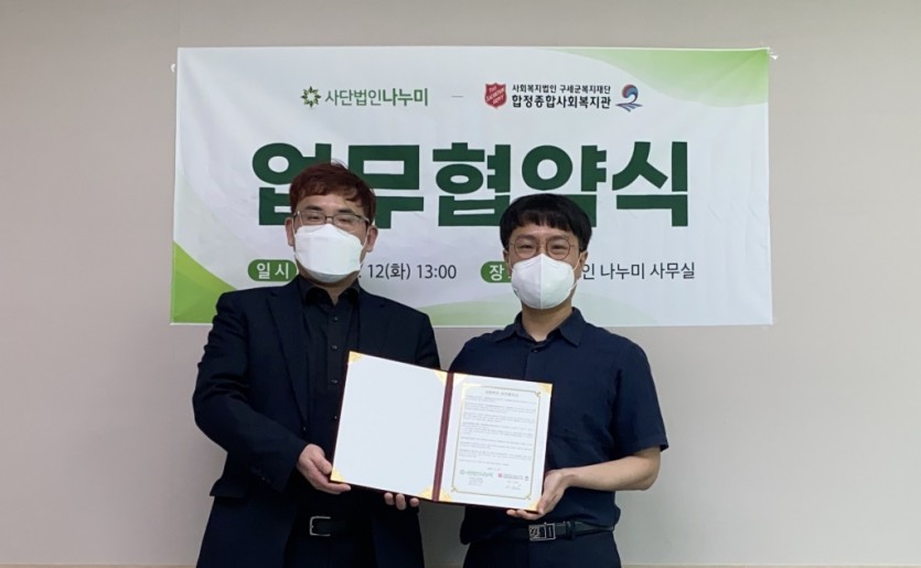 ▶내용 : 사단법인 나누미 - 합정종합사회복지관 간의 사회복지 업무를 위한 긴밀한 업무 협약